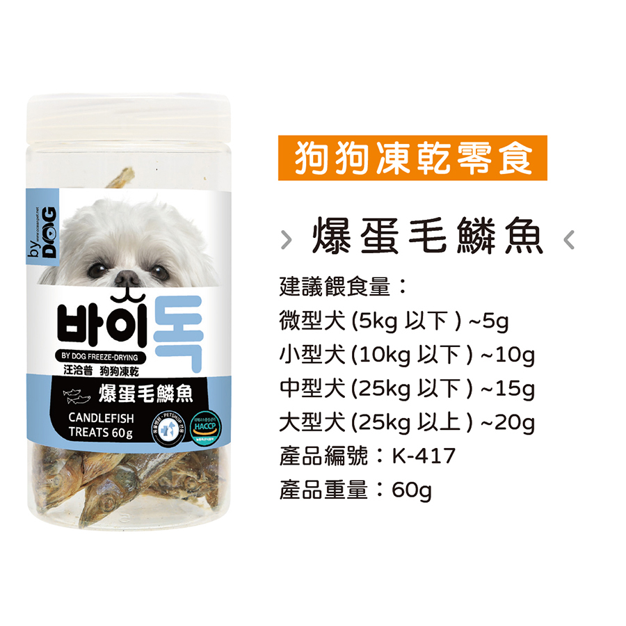 汪洽普 狗狗凍乾零食-爆蛋毛鱗魚60g 狗零食