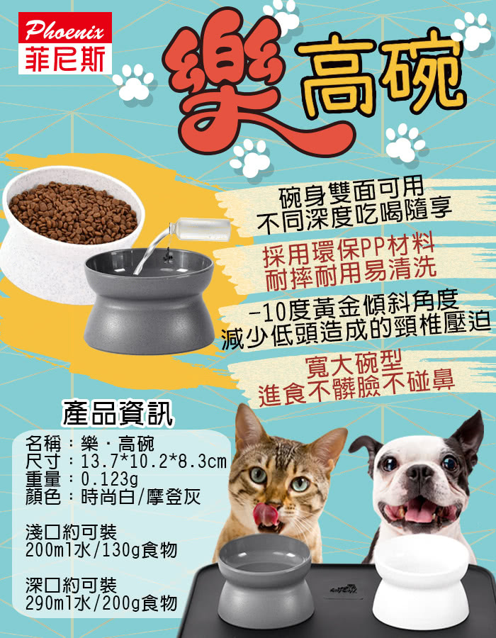 | 【商品說明】 | 碗身雙面可用,不同深度吃喝隨享 淺口端約可裝200ml水/130g食物 深口端約可裝290ml水/200g食物 採用環保PP材料,耐摔耐用易清洗 -10度黃金傾斜角度減少低頭造成的頸椎壓迫 寬大碗型,短鼻進食不髒臉、不碰鼻 |