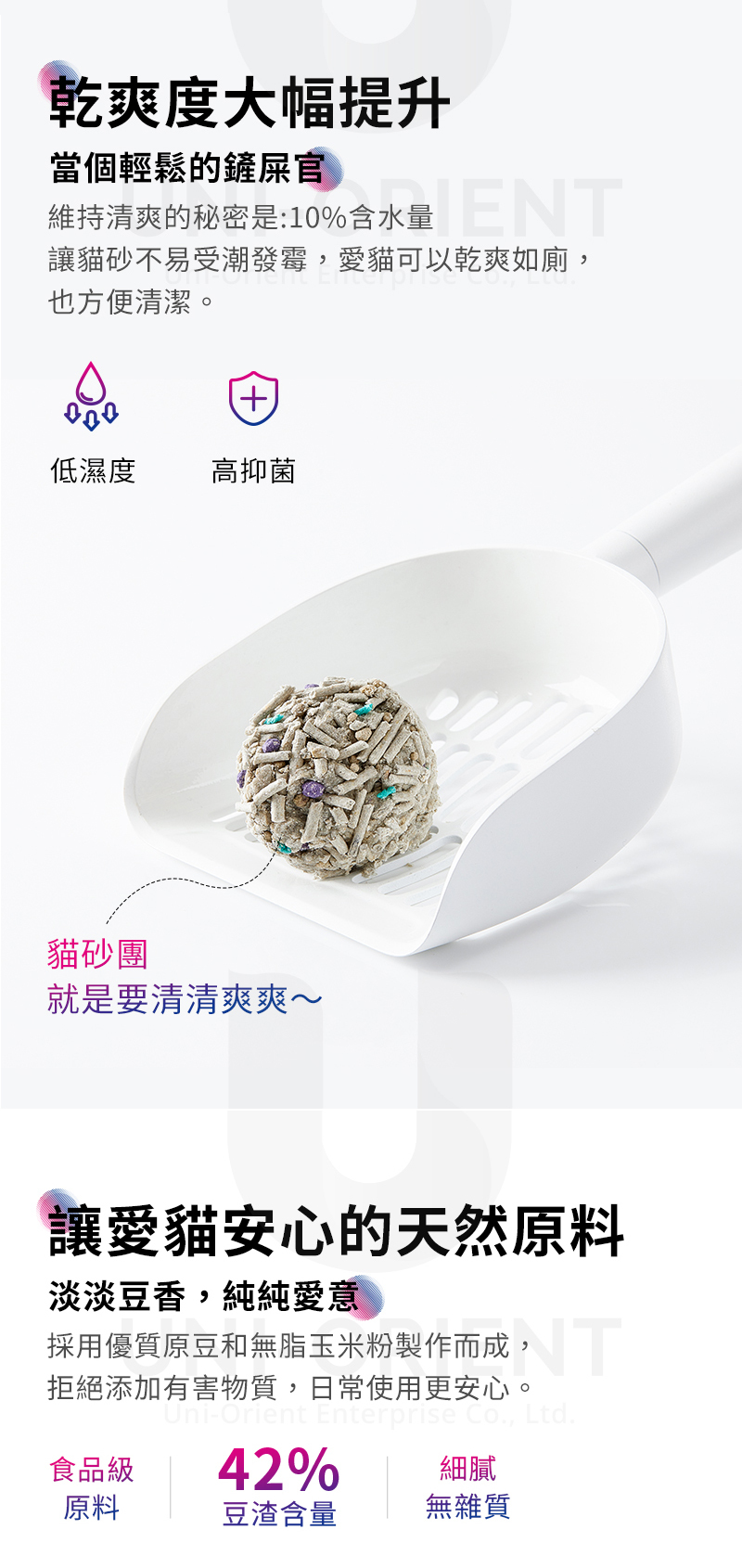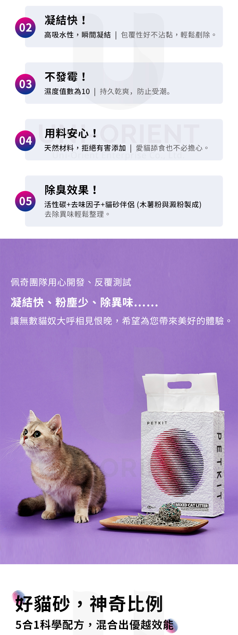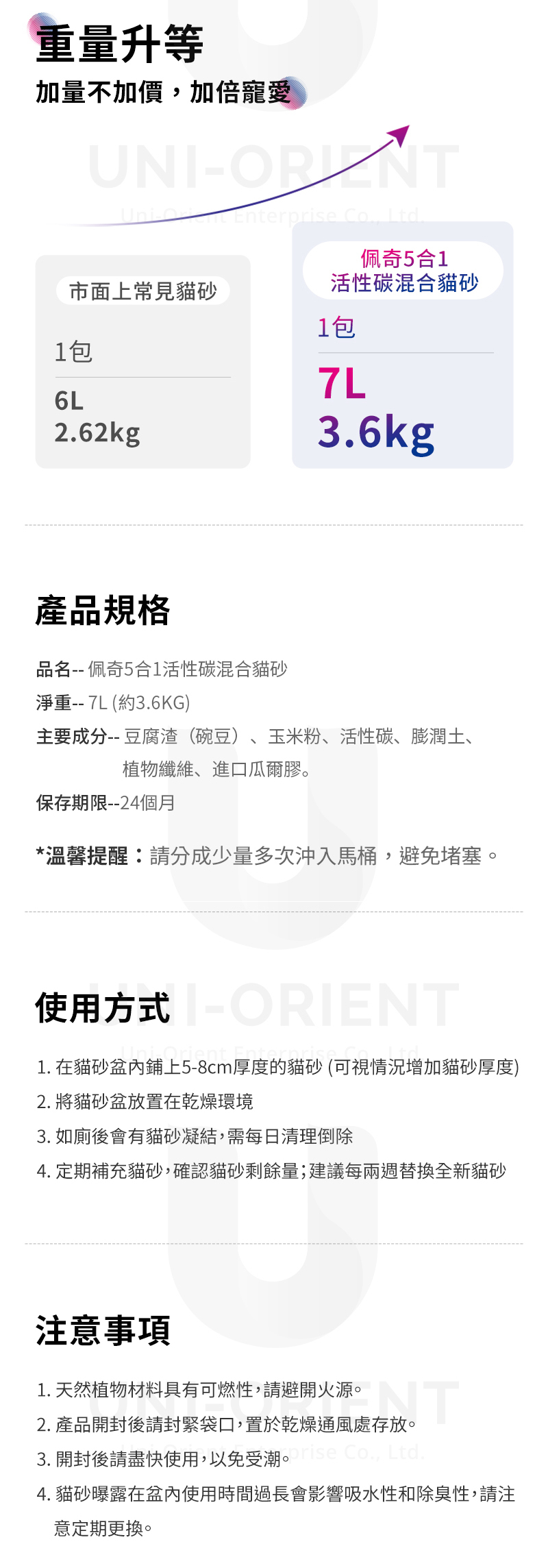 | 【商品說明】 | 【粉塵少】硬度高、不易碎、不揚塵,呵護愛貓呼吸道健康 【凝結快】高吸水性,瞬間凝結,包覆性好不沾黏,輕鬆剷除 【不發霉】濕度值數為10,持久乾爽,防止受潮 【用料安心】天然材料,拒絕有害添加,愛貓舔食也不擔心 【除臭效果】活性碳+去味因子+貓砂伴侶,去除異味輕鬆整理 |