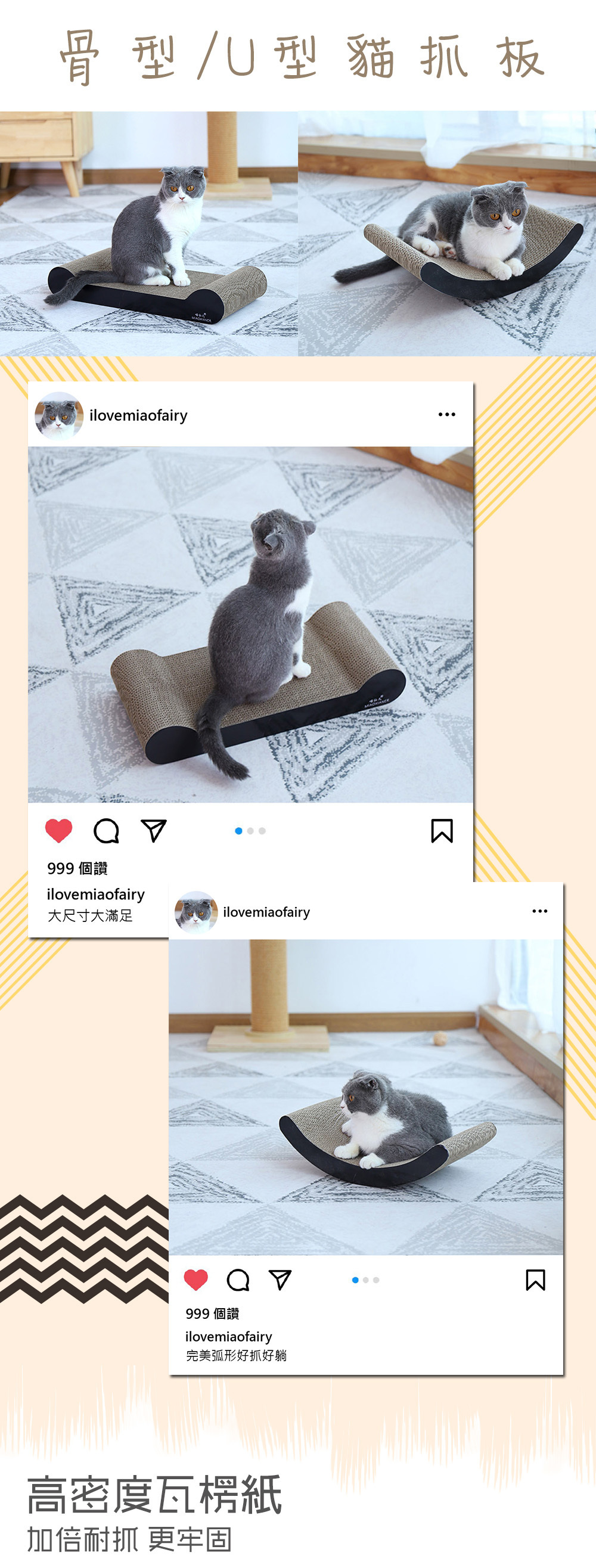 | 【商品說明】 | 高密度瓦楞紙,加倍耐抓、更牢固 特殊材積無法超取唷! |