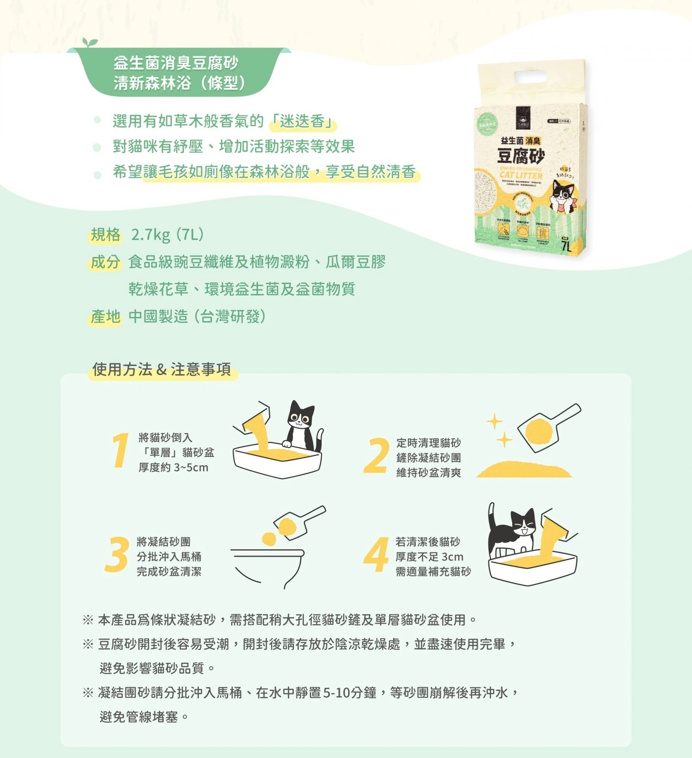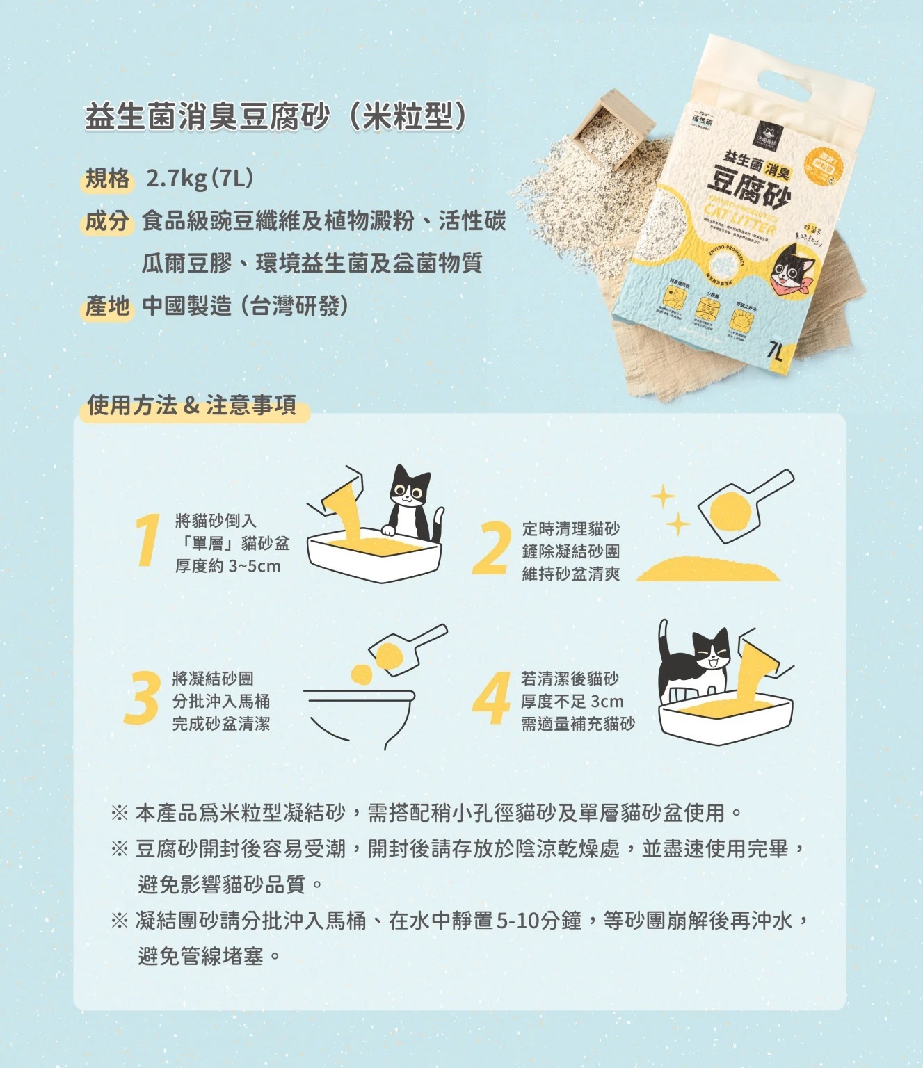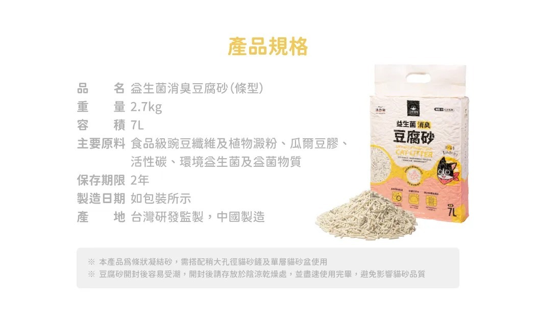 6包免運組【汪喵星球】益生菌消臭豆腐砂貓砂7L (2.7KG) 條型 米粒型