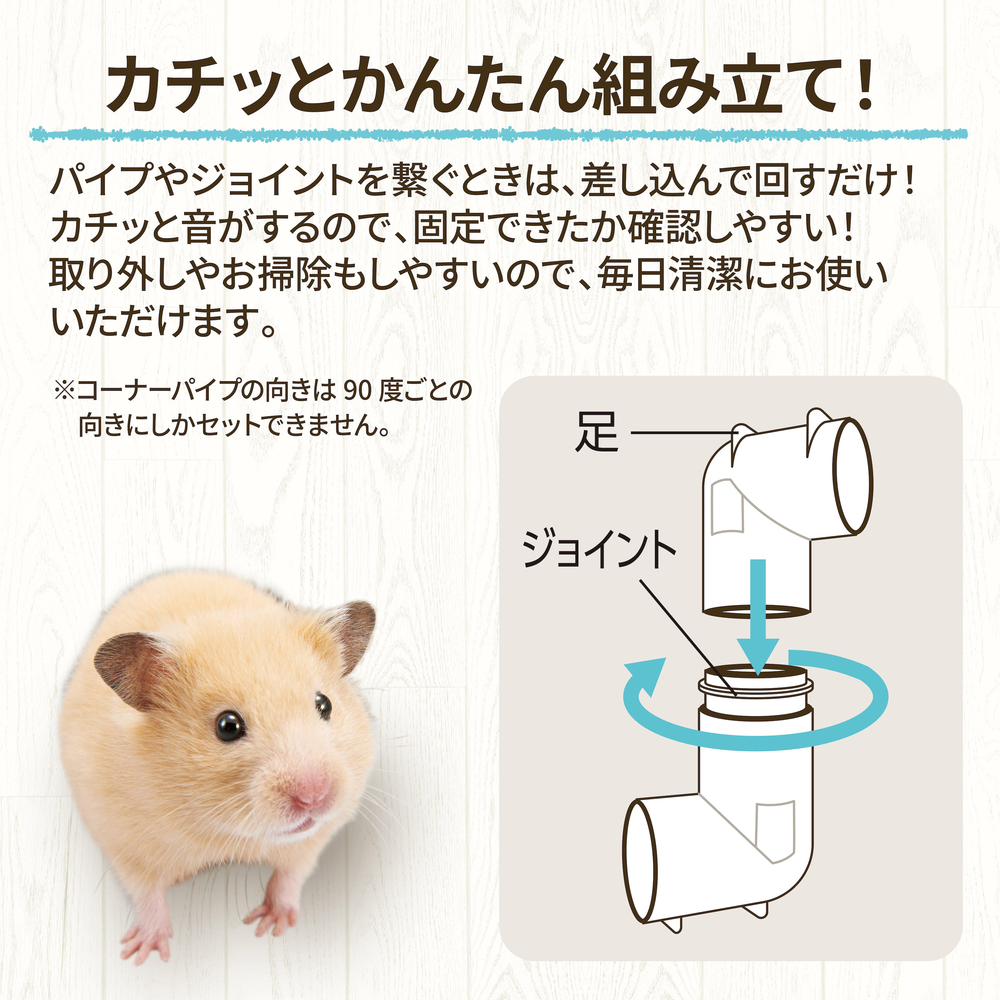 倉鼠的各種表情和行為。 [攀爬和爬行的遊戲區] 您可以打造一個運動空間,讓您的倉鼠在管道內上下攀爬。