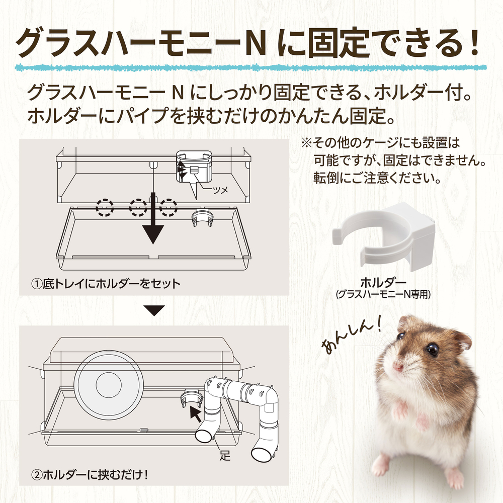 [牢固地安裝在專用籠子上] 可以牢固地安裝在專用籠子上,易於清潔!它可以透過支架安裝在「玻璃和諧N系列」籠子上,零件可以輕鬆拆卸,方便您隨時清潔。