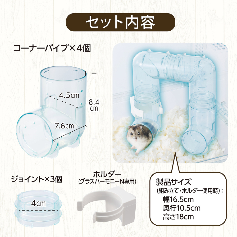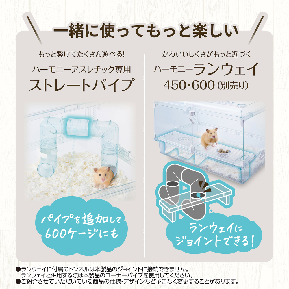 [可與其他配件自由擴展和定制] 使用連接件連接“和諧運動專用直管”和“和諧跑道”等單獨出售的配件,您可以根據籠子的大小和您的喜好擴展跑道。