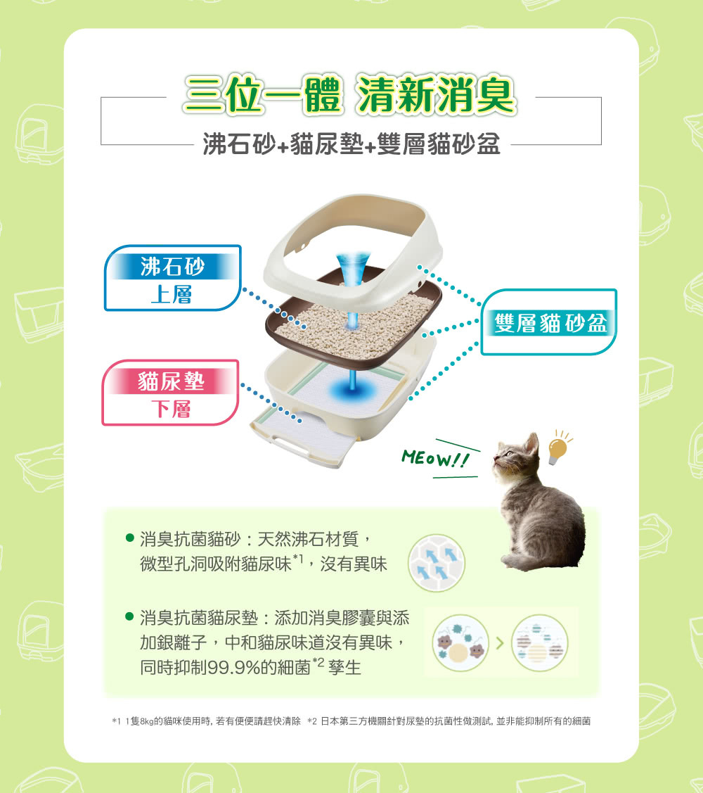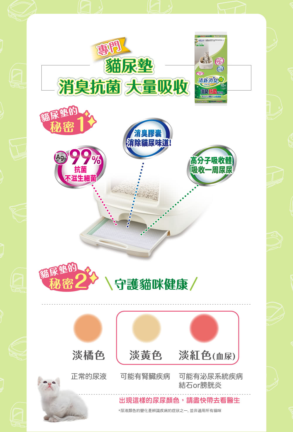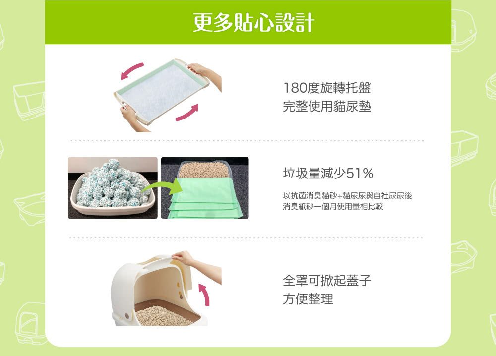 附贈內容物:貓鏟*1、抗菌貓砂2L*1 / 抗菌貓尿墊*4片 (43*29cm)